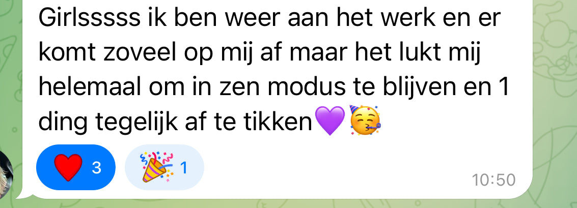 Laat je dragen in een magische groep, doe mee bij de meerdere live sessies per maand, check in bij de voice memo coaching in de Telegram groep en zie je hele leven 180 graden transformeren.