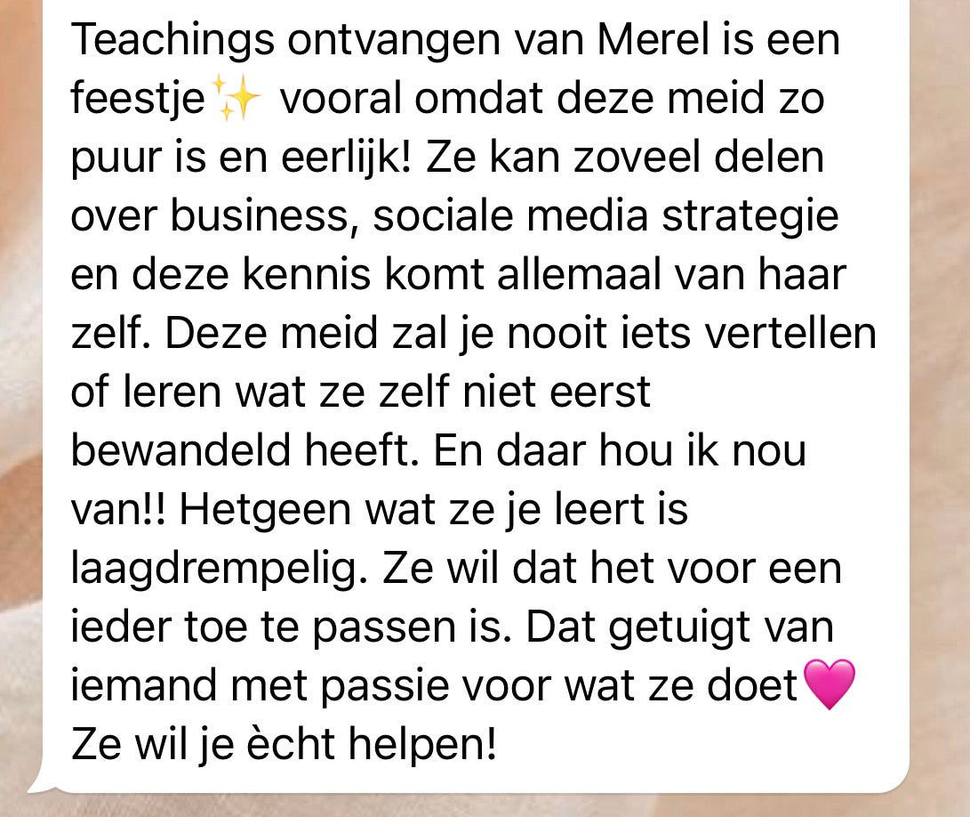 - En uiteraaaaaard deel ik alle ins & out met je over online ondernemen, schalen, je Instagram laten groeien, content, een community bouwen, sales in de DM, funnels, al mijn sexy systems en nog veel meer ;)