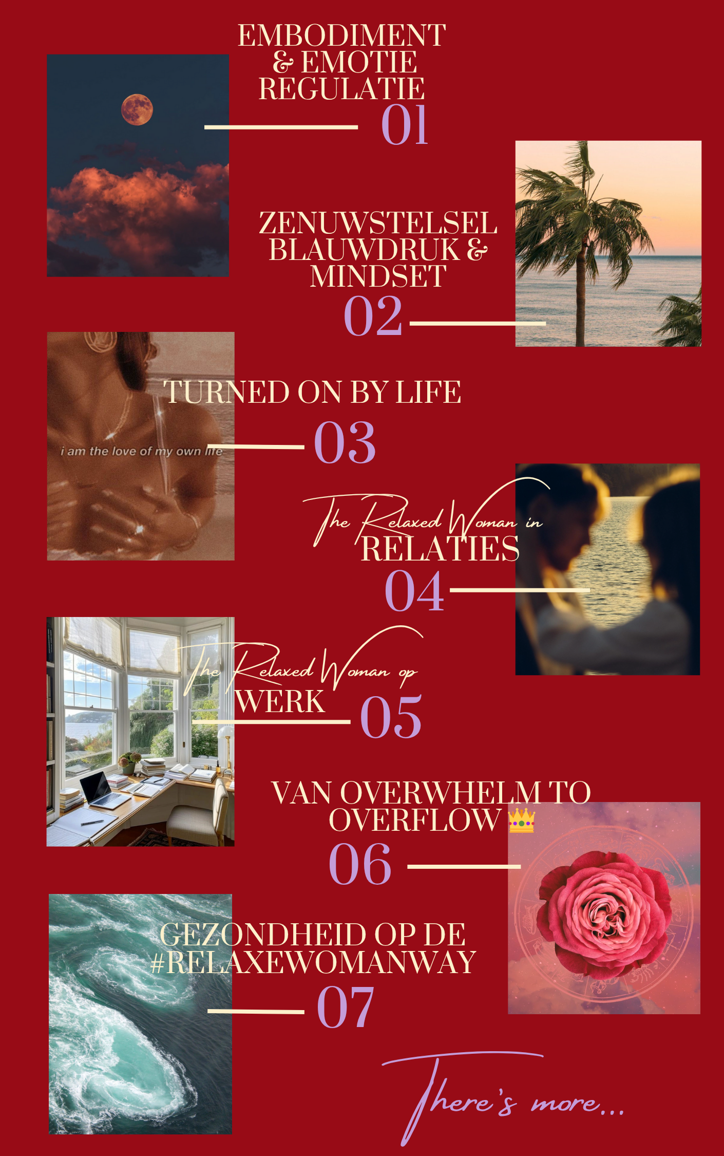 In de Relaxed Women Revolution ga je ervaren dat ‘you get to have it ALL’. Want het is allemaal met elkaar verbonden door jouw mooie zenuwstelsel en onderbewustzijn. Hoe jij door het leven beweegt, bepaalt alles my love. 🔥